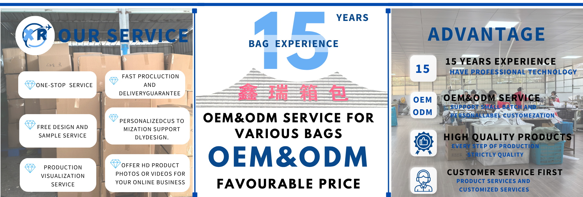 Shangrao Xinrui Luggage Co., LTD., registered capital of 500,000 yuan, plant area of 800 square meters. The main products are luggage clothing storage bag set or single piece, can also be matched by their own set; Makeup bag, toiletry bag, shopping bag, zipper compression bag and so on. The number of registered years of the company is less, but the factory also has 15 years of working experience, because of the focus, so more professional.